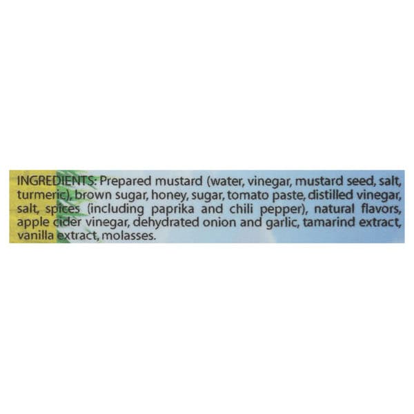Prepared Mustard (water, Vinegar, Mustard Seed, Salt, Turmeric), Brown Sugar, Honey, Sugar, Tomato Paste, Distilled Vinegar, Salt, Spices (including Paprika And Chili Pepper), Natural Flavors, Apple Cider Vinegar, Dehydrated Onion And Garlic, Tamarind Extract, Vanilla Extract, Molasses.