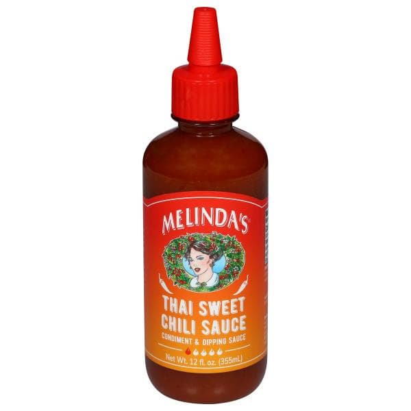 Condiment & dipping sauce. Our philosophy is simple. Heat and flavor mean everything. In Melinda’s Kitchen, Thai Sweet Chili Sauce is crafted by blending cayenne peppers, garlic and pure cane sugar to make a sweet and spicy condiment and dipping sauce. This sauce is sweet, garlicky, spicy and delicious! Melinda’s Thai Sweet Chili Sauce: A delicious condiment and dipping sauce. Heat Level 2 out of 5: a perfectly sweet and spicy concoction. Just enough sweet heat and flavor. Uses: Great for dipping eggrolls, spring rolls, fried or grilled chicken. Perfect as a glaze for roasted meats. Melindas.com. Instagram. Facebook. Twitter. (at)melindasfoods. Product of Colombia.