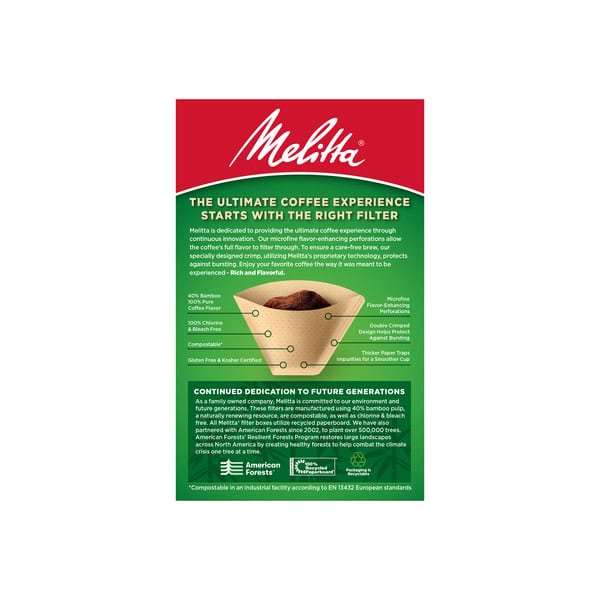 ● Melitta Bamboo Coffee Filters are made with 40% Bamboo pulp, a naturally renewing resource.