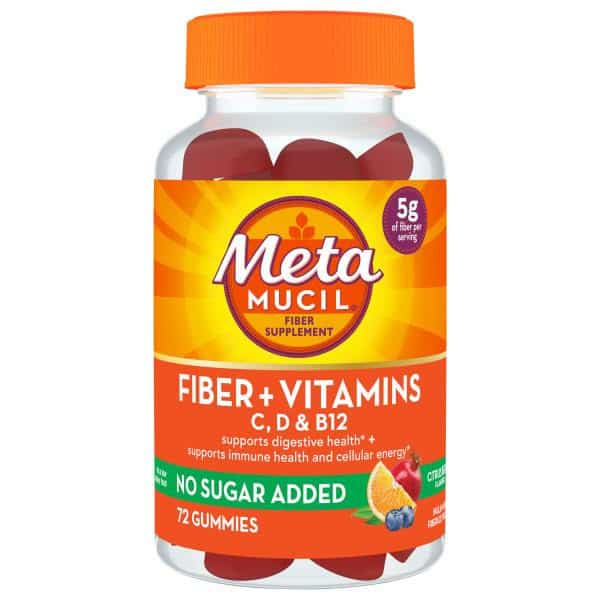 Did you know that less than 10% of Americans get enough fiber per day? Metamucil Fiber Gummies for adults are the delicious and easy way to help you get the daily fiber you need, now with added Vitamins C, D, + B12 to help support immune health* + the metabolism of fats and protiens*! Metamucil Gummies have a delicious Citrus Berry flavor that will delight even a picky palate with no added sugar. Metamucil Gummies have as much fiber as 2 cups of broccoli in just one serving. Metamucil Fiber Gummies’ prebiotic Inulin and Fibersol(R) blend provide 5g of plant-based prebiotic fiber in just three gummies to nourish good bacteria in your gut*, promote a healthy gut microbiome*, and boost your daily fiber intake, helping you support your daily digestive health* for a better you. Getting the recommended amount of daily dietary fiber can be tricky, and Metamucil has been trusted for 90 years to help fill the fiber gap. From the makers of the #1 doctor recommended, #1 gastroenterologist recommended, & #1 selling^ fiber brand, try Metamucil Fiber gummies vitamin gummies today.This product is made with the newest additions to Metamucil’s fiber family: Fibersol*** and Inulin. For Metamucil’s signature Psyllium fiber, check out our flavored powders, capsules, wafers, or on-the-go packets.*THESE STATEMENTS HAVE NOT BEEN EVALUATED BY THE FOOD AND DRUG ADMINISTRATION. THIS PRODUCT IS NOT INTENDED TO DIAGNOSE, TREAT, CURE, OR PREVENT ANY DISEASE.^ Procter & Gamble calculation based in part on data reported by NIQ through its ScanTrack Service for Digestive Health Fiber Supplements for the 52-week period ending 6/01/24, for the Total U.S. Market xAOC, according to the Procter & Gamble custom product hierarchy. Copyright 2024 Nielsen Consumer LLC.Among recommendations in a ProVoice survey 2022 (OTC therapeutic fiber category)***Fibersol(R) is a soluble dietary fiber produced by & registered trademark of ADM / Matsutani LLC