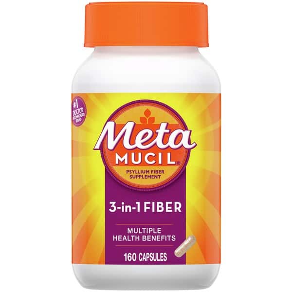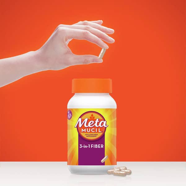 Digestive system making you feel sluggish? Start by taking Metamucil Multi-Health Fiber Capsules every day to trap & remove the waste that weighs you down, so you feel lighter and more energetic**. Metamucil is the only leading brand made with Psyllium Fiber^, a plant-based fiber that helps promote digestive health.* It also helps maintain healthy blood sugar levels*and lower cholesterol†. Try our Multi-Health Capsules today for easy dosing, at home or on-the-go.