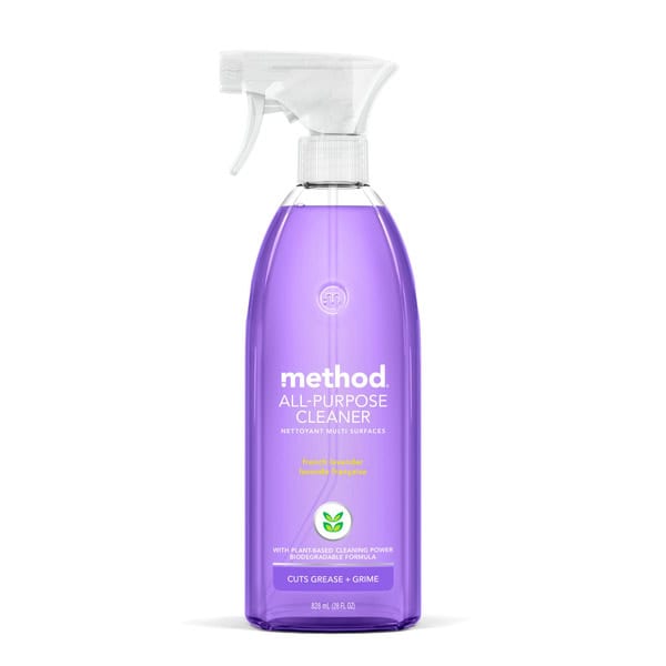 • This all-purpose surface cleaner spray puts the hurt on dirt., • Biodegradable formula with plant-based cleaning power cuts through grease + grime., • Cleans most non-porous surfaces including counters, tile, stone, wood and glass., • Cruelty free. Tested by people, not on animals., • Bottle (minus nozzle) made with 100% recycled plastic (PCR)., • French lavender is an enchanting scent medley of lavender, bergamot, purple sage + chamomile, perfect for any chĂ¢teau