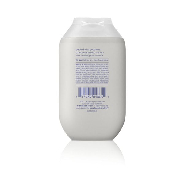 • Infused with coconut, rice milk + shea butter., • Biodegradable formula made with plant-based cleansers., • Made with no parabens, no phthalates, no bad vibes., • Leaves skin feeling moisturized + smelling scent-sational., • Bottle (minus lid) made of 65% recycled plastic (PCR)., • Cruelty free. Tested by people, not on animals.