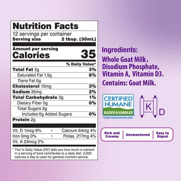 • CERTIFIED HUMANE®: We work with 25 California Certified Humane goat dairies to supply the freshest goat milk possible
