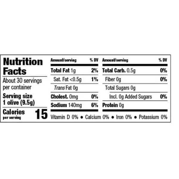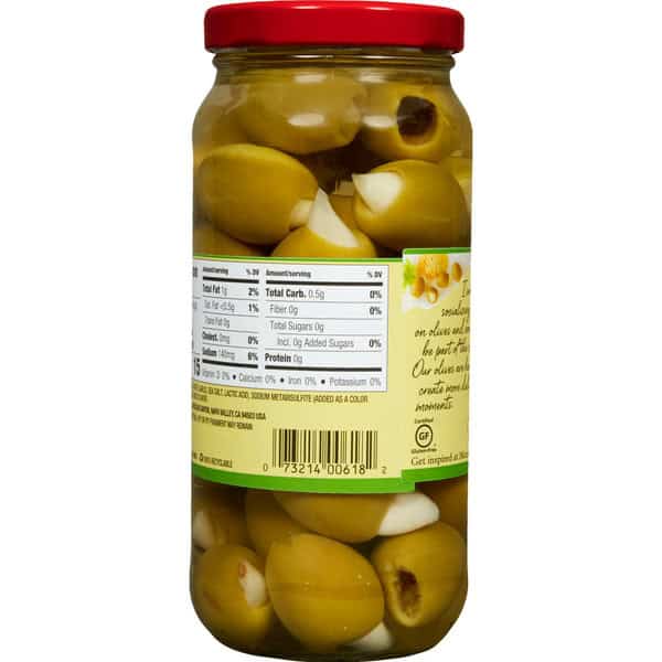 Olives, Water, Garlic, Sea Salt, Lactic Acid, Sodium Metabisulfite (added As A Color Stabilizer), Natural Garlic Flavor.