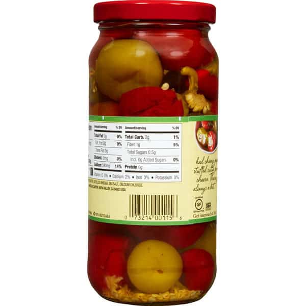 Our Sweet Cherry Peppers packed at our Napa Valley facility within 24 hours of harvesting. This juicy pepper variety comes in red and green and is sweet, slightly tart and mildly spicy. They’re perfect for stuffing with goat cheese, provolone, prosciutto or just eating straight out of the jar.