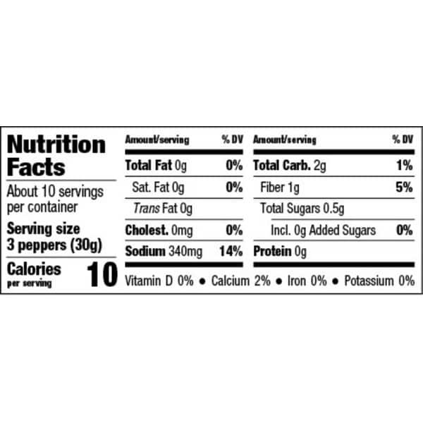 Peppers, Water, Distilled Vinegar, Sea Salt,calcium Chloride.