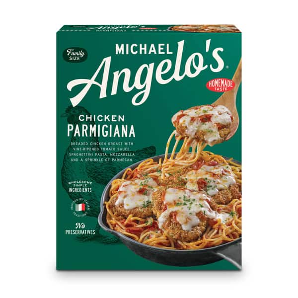 Our Michael Angelo’s Chicken Parmesan features a homestyle breaded chicken breast with vine-ripened tomato sauce, spaghettini pasta, mozzarella and a sprinkle of parmesan. Enjoy the homemade taste of this classic Italian recipe, made with wholesome simple ingredients and no preservatives! All of our recipes were handed down from our Nonna Foti, who grew up in Sicily. She didn’t use fillers. She didn’t use anything that wasn’t available in her pantry… and neither do we.