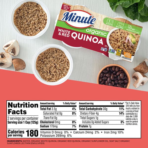• As a dependable family favorite, Minute White & Red Organic Quinoa is ready in just one minute, creating more time for your loved ones. Less time for cooking and more time for enjoying