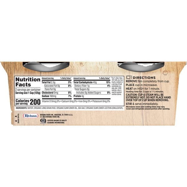 Water, Organic Parboiled Long Grain Rice, Organic Sunflower Oil, Sea Salt, Sunflower Lecithin (emulsifier).