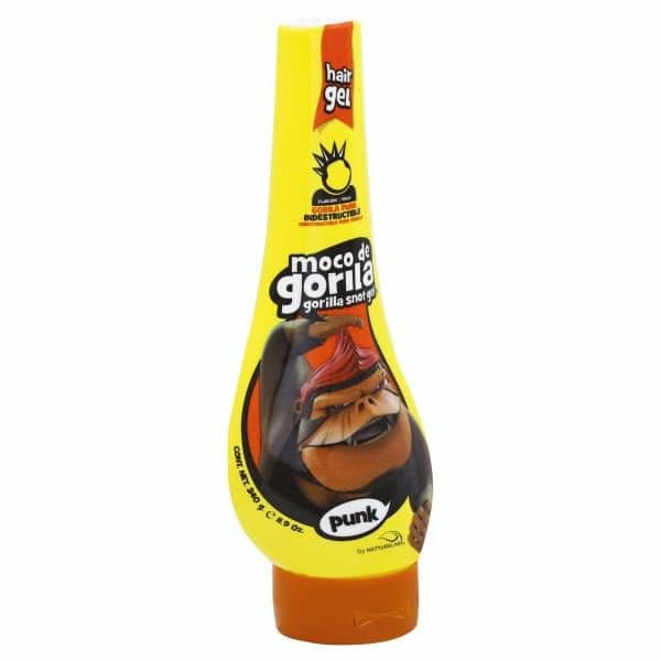 Punk the indestructible. Gorilla snot gel. Now you can create any hairstyle that you can imagine with Gorilla Snot Gel Punk Indestructible. Due to its long lasting hold effect you will be able to show off your hairdo all day long. Gorilla Snot Gel Punk Indestructible will give you the look that will make you different with a hairstyle that can withstand all weather conditions and any activity. Its advanced residue-free formula, also nourishes your hair because of the natural ingredients. Snot your hair! Hold Meter: 10. Toll Free: 1-855-MOCOINC. www.mocodegorila.tv. Not for sale in Europe, Middle East or Latin America. Made in Mexico.