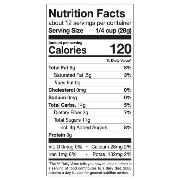 Contains: tree nuts (almonds, walnuts). Manufactured in a facility that processes peanuts and tree nuts.