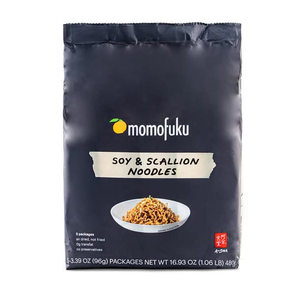 Momofuku Goods Soy & Scallion Noodles combine the convenience of packaged noodles with the restaurant-level flavor that Momofuku is known for. Plus our noodles are air-dried, never fried so they’re as nutritious as they are delicious. Each order contains 5 individual packs of noodles.