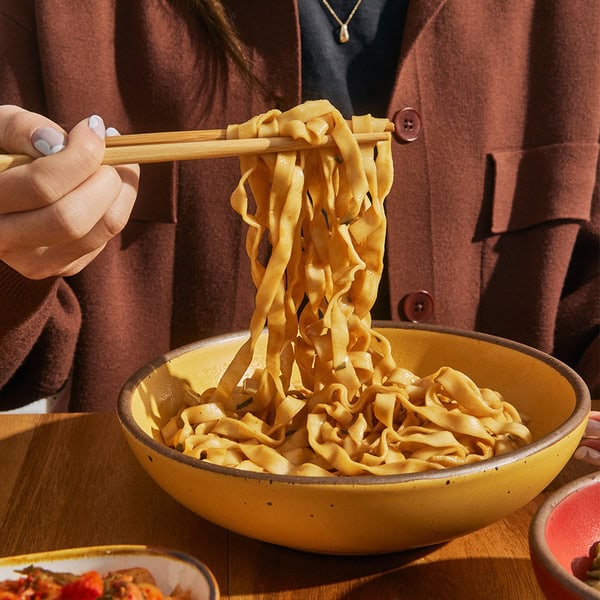 Our Soy & Scallion noodles come with a rich sauce made from soy sauce and sesame oil. It creates the perfect balance of salty, sweet, and savory flavors. The included scallion packet takes it to the next level.