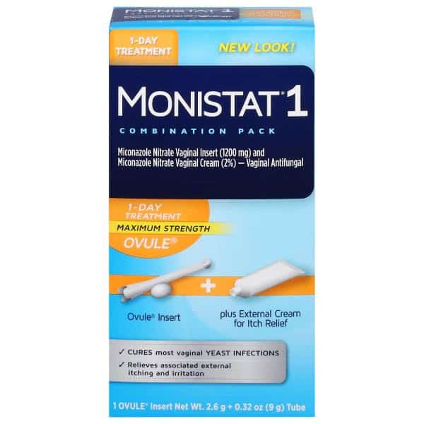Monistat 1-Dose Combination Pack Yeast Infection Treatment is the number 1 gynecologist-recommended brand for over the counter treatments for yeast infections.* Designed with busy women in mind, the single dose disposable and contoured vaginal applicator is safe and easy to use. The ready-to-use ovule insert stays in place all day or all night and contains 1200 mg of miconazole nitrate, the maximum strength dose available over-the-counter, to fight symptoms of yeast infections fast so you don’t have to slow down or interrupt your busy schedule. Whether you’re working out at the gym, hustling at work, or just need to get back to running errands comfortably, you can rely on Monistat’s 1 Day Treatment. For maximum comfort as quickly as possible, combine Monistat’s 1 Day Treatment with Monistat Instant Itch Relief Cream. Combined with aloe vera for maximum relief, Monistat’s antifungal cream contains 1% hydrocortisone to help relieve intense vaginal itch fast. Get relief from the itchiness, odor, and irritation of a yeast infection with this anti-itch cream. Monistat has a range of products to treat vaginal yeast infections, provide symptom relief, and help with other feminine health needs such as itching and irritation, odor, chafing, and discharge. Monistat 1 Day Treatment starts working right at the site of infection to fight the 5 most common types of yeast infections** and relieves symptoms 4x faster than the leading prescription pill***. If you do not feel some relief within 3 days, or complete relief within 7 days, stop using the product and consult your healthcare professional. Feel better faster at home with Monistat. *According to the ProVoice Survey, fielded to US/OB-GYNs from 12/1/21-11/30/22. ** Based on ISSVD. (2019). Vulvovaginal Candidiasis: Diagnosis and Treatment Tips. *** Based on clinical study of MONISTAT 1-Dose Ovule Combination Pack versus fluconazole 150 mg tablet. Monistat 1 Day Yeast Infection Treatment for Women, 1 Miconazole Ovule Insert & External Monistat Anti-Itch Cream Bundle.