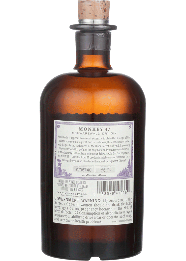 Germany- Distilled from 47 predominantly unusual but regional botanicals such as lingonberries and blended with natural spring water. Juniper is prominent on the nose, and intense herbal notes rise up. Monkey 47 takes a sweet and fruity turn at the end. Rated 99 pts by Distiler.com