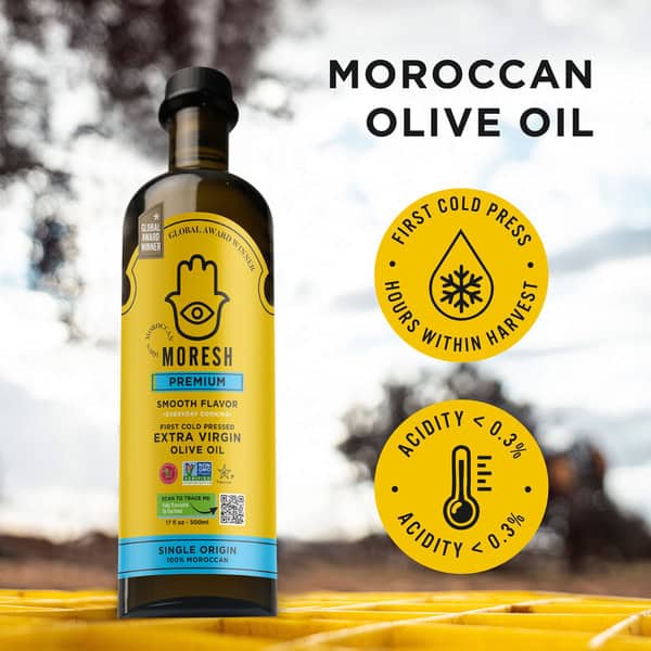 Moresh Olive Oil, Extra Virgin, Smooth Flavor, 100% Moroccan, Premium