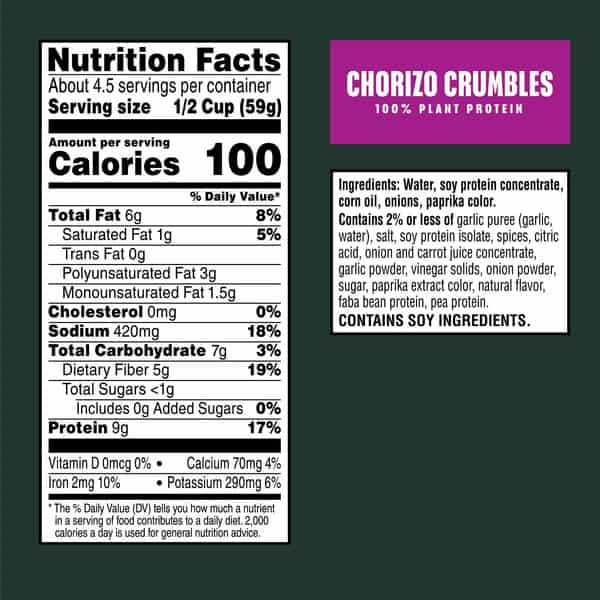 • Mouthwatering and meatless, MorningStar Farms Chorizo plant-based crumbles are a delicious, meat alternative to any balanced diet