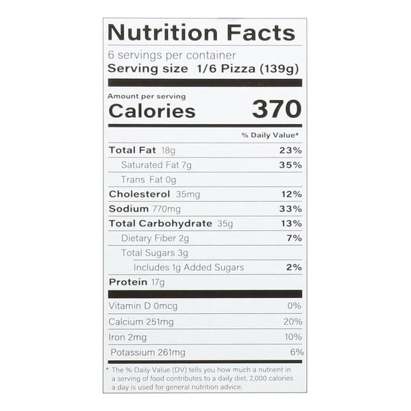 Cook thoroughly. Cooking Instructions: Tray included. For crispy crust! 1. Preheat oven to 425 degrees F. Remove pizza from plastic wrapper but keep in tray. 2. Place pizza on center rack. Do not broil. Baking tray should not touch the sides or back of the oven. 3. Bake for 18-21 (Do not eat without cooking. Keep frozen. Product appears to be cooked but is not and needs to be cooked to an internal temperature of 165 degrees F. Actual oven temperature may vary, so adjust baking time and temperature as necessary. Use conventional oven only) minutes. Once cheese is melted, remove pizza from oven. 4. Serve and enjoy. Remove pizza from tray before cutting. Caution: Tray and pizza will be hot!
