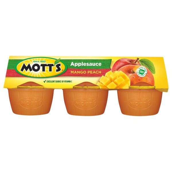The original, delicious treat, Mott’s Mango Peach Applesauce is the perfect snack or meal companion. It’s a good source of Vitamin C and free of cholesterol. Bringing the best of the orchard to your household, Mott’s helps families enjoy delicious fruit goodness every day. The apple juice and sauce brand is dedicated to giving moms easy ways to help their families be their very best. Mott’s has a strong heritage and has been the trusted apple juice and sauce brand since 1842. Mott’s hold the apples to a very high standard, that’s why the products pack lots of delicious fruit flavor from ripe apples into every serving. Enjoy Mott’s in a variety of pack types including pouches, cups, jugs, juice boxes and jars; so whether you’re home with your family or on-the-go and in need of a snack, Mott’s has a product for you. We also offer an extensive suite of flavors so you can add variety in your snacking. Mott’s 100% Apple juice comes in refreshing flavors like Apple Cherry, Apple White Grape and Fruit Punch while sauce has options like Cinnamon and Mixed Berry so you’ll be sure to find something that satisfies your taste buds. You won’t find any artificial flavors in Mott’s products, so you can feel good about making healthy choices.