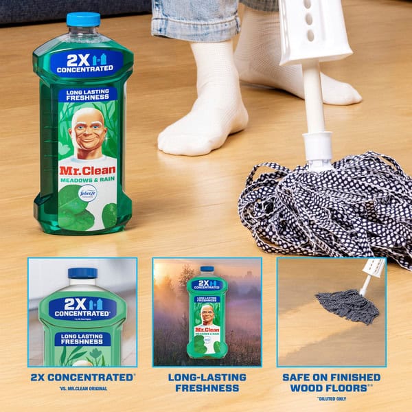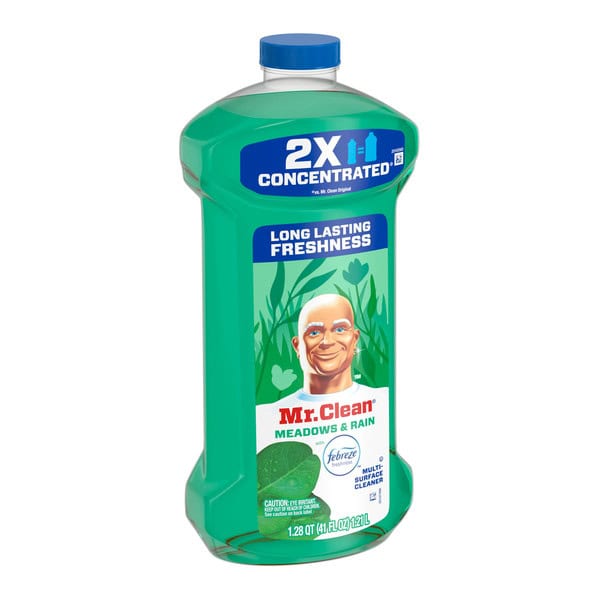 Mr. Clean’s 2X Concentrated* All Purpose Cleaner muscles through 100% of dirt and grease for powerful, multi surface cleaning. This floor cleaner for mopping is great for cleaning linoleum, tile & hardwood floors**. Use Mr. Clean all purpose cleaner as a bathroom cleaner to clean toilets, sinks, and bathtubs. This multi surface cleaner even works outside on garbage cans, doors, and more. It makes cleaning your house that much easier and leaves the long lasting freshness of Unstopables Fresh scent behind. Add Mr. Clean to your arsenal of cleaning supplies today!*vs. Mr. Clean Original**use diluted only