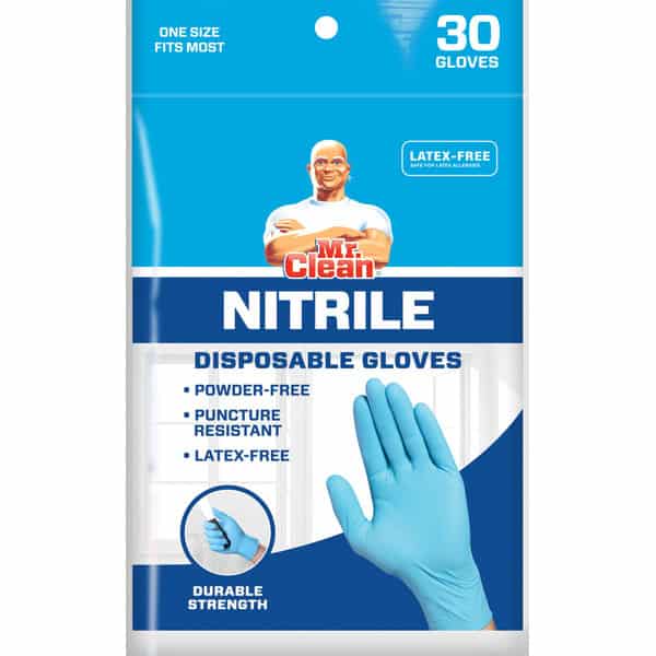 Mr. Clean Disposable Nitrile Gloves are made of synthetic latex and are powder free. They contain no latex protein and offer excellent resistance to punctures & tears. Nitrile Gloves can be used to offer superior protection from solvents, grease and oils. Safe alternative for those who are allergic to natural rubber latex or have sensitive skin. The beaded cuff provides additional strength to the cuff making the glove more durable when donning.