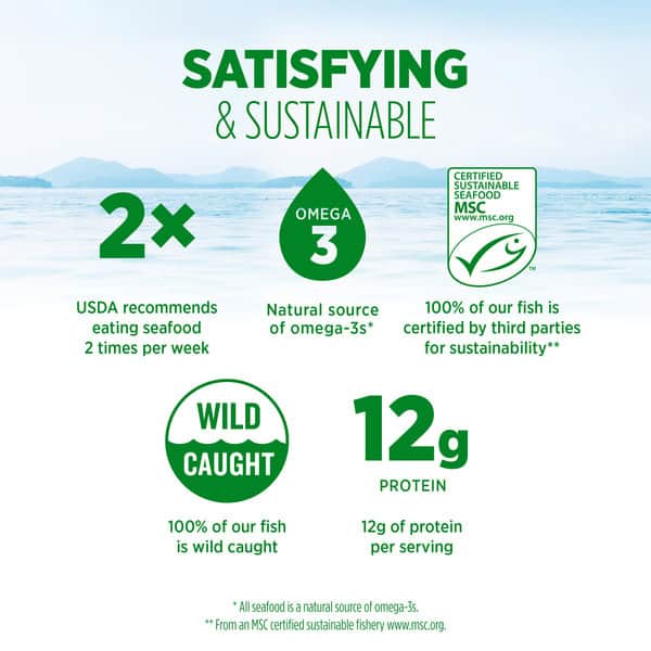 ** 100% of our fish is certified by a third party for sustainability from an MSC certified sustainable fishery