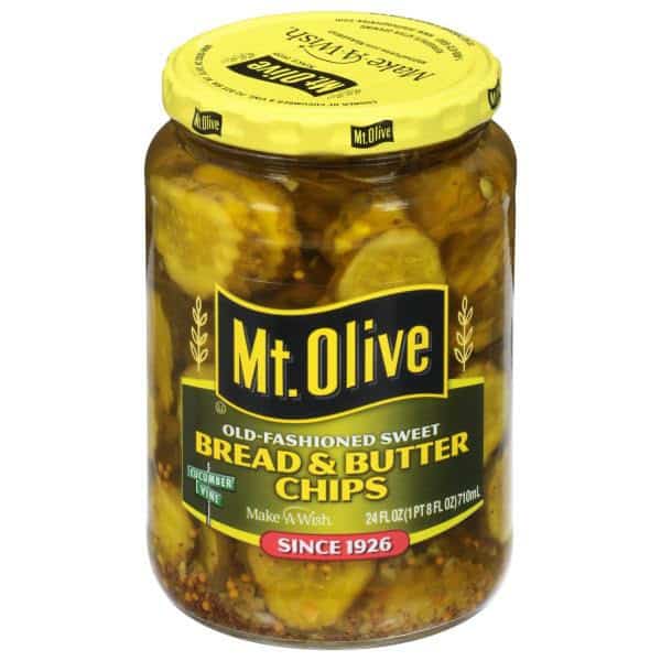 Mt. Olive Bread & Butter Chips feature the old fashioned sweet pickle flavor that you have always loved. Both salty and sweet, Mt. Olive Old Fashioned Sweet Bread & Butter Chips are a crunchy pickle chip that taste great as a side, on sandwiches, or with a salad! These delightful Bread & Butter Chips feature crispy cucumbers thinly sliced and mixed with vinegar, celery & mustard seeds, and onion flakes for a mouthful of flavor. These classic-cut Bread & Butter pickle chips pack a bold taste. Mt. Olive Pickle Co. has been producing your favorite pickles for nearly 100 years, and Mt. Olive is proud to be the #1 best-selling brand of pickles, peppers and relishes in the United States. Our crunchy, flavorful pickle goodness comes from the corner of Cucumber & Vine in our hometown in North Carolina.