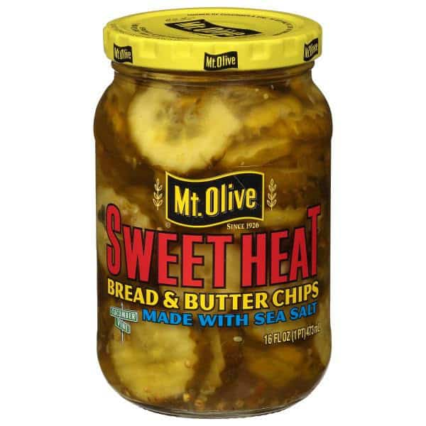Cucumbers, Sugar, Water, Vinegar, Sea Salt, Red Bell Pepper, Mustard Seeds, Onion Flakes, Calcium Chloride (firming Agent), Celery Seeds, Polysorbate 80, Natural Flavors, And Turmeric (for Color).