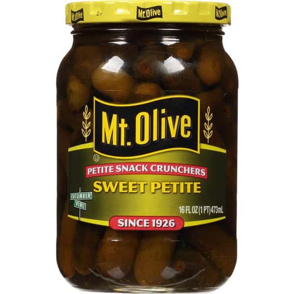 • One 16 fl oz jar of Mt. Olive Sweet Petite Cruncher Pickles
