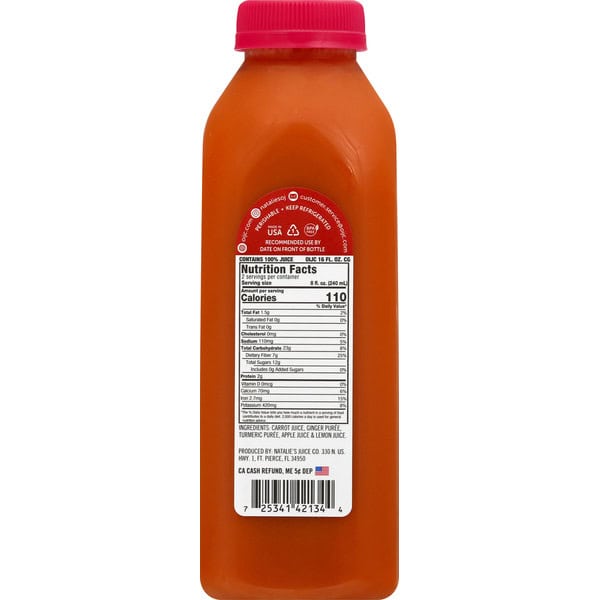 Orchid Island Juice Company. Only 5 Ingredients: fresh carrots, ginger, turmeric apples & lemons. No preservatives, GMOs, artificial ingredients.
