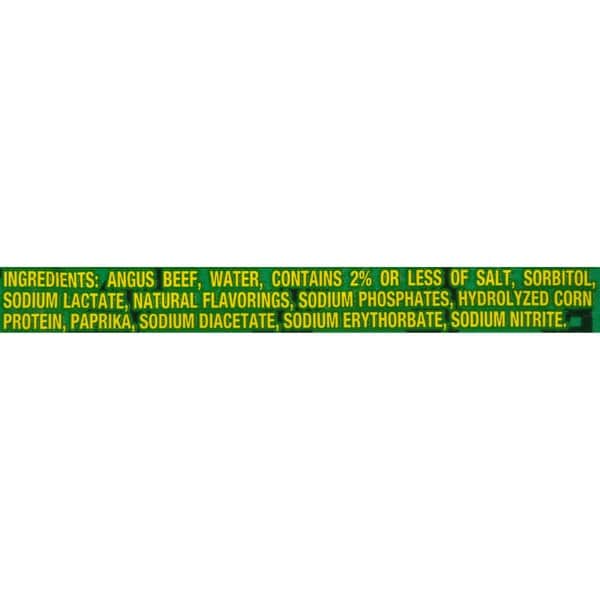 Angus Beef, Water, Contains 2% Or Less Of Salt, Sorbitol, Potassium Lactate, Natural Flavorings, Sodium Phosphates, Hydrolyzed Corn Protein, Paprika, Sodium Diacetate, Sodium Erythorbate, Sodium Nitrite