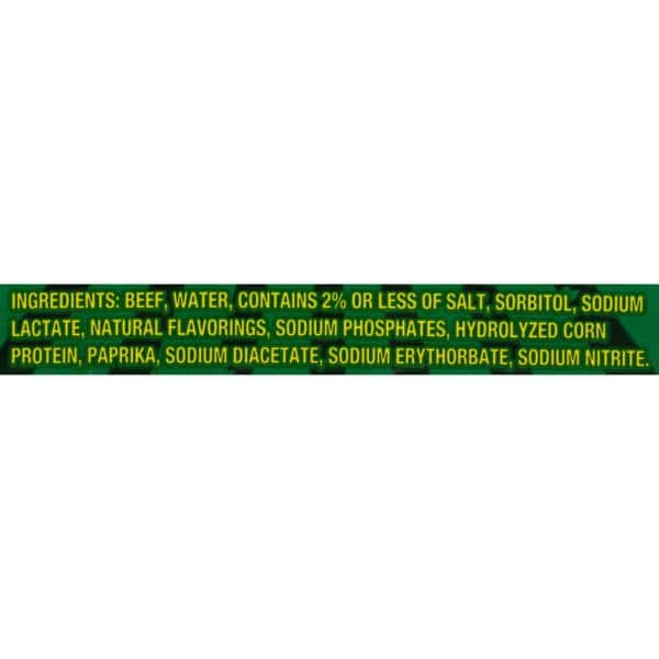 Beef, Water, Contains 2% Or Less Of Salt, Sorbitol, Sodium Lactate, Natural Flavorings, Sodium Phosphates, Hydrolyzed Corn Protein, Paprika, Sodium Diacetate, Sodium Erythorbate, Sodium Nitrite.