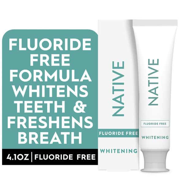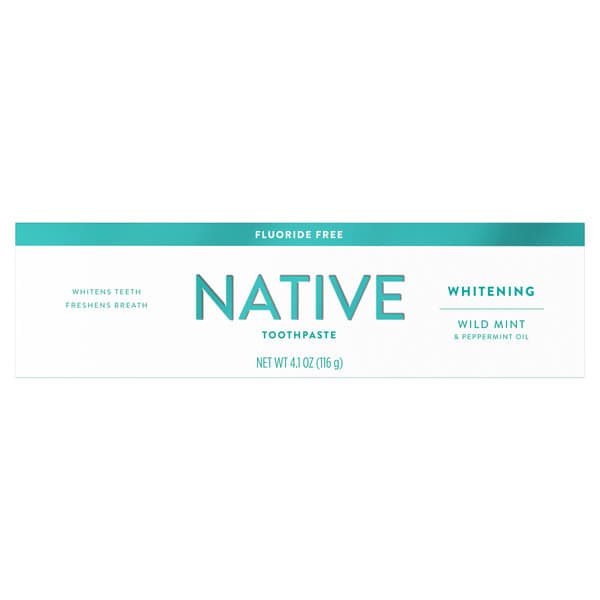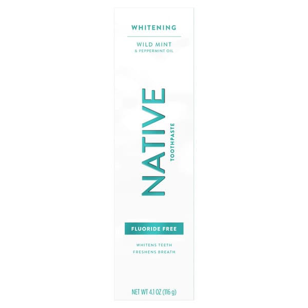 Try this SLS free and fluoride free whitening toothpaste. Native Toothpastes are not only simple and safe, but also effective. Use everyday for whiter teeth and fresher breath. Native Whitening Wild Mint has a clean and refreshing peppermint flavor.