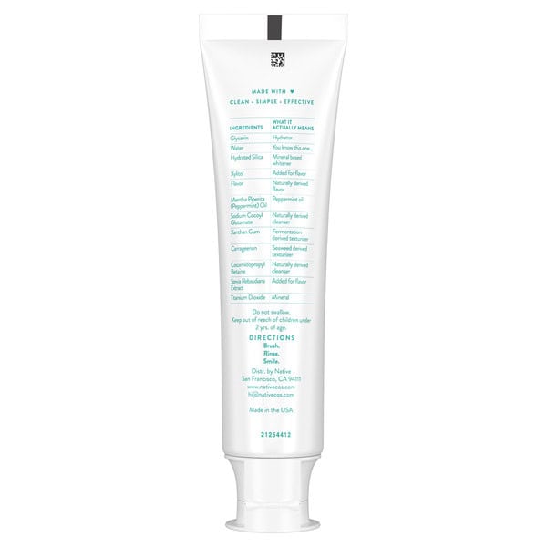 Glycerin What It Actually Means (hydrator), Water What It Actually Means (you Know This One…), Hydrated Silica What It Actually Means (mineral Based Whitener), Xylitol What It Actually Means (added For Flavor), Flavor What It Actually Means (naturally Derived Flavor), Mentha Piperita (peppermint) Oil What It Actually Means (peppermint Oil), Sodium Cocoyl Glutamate What It Actually Means (naturally Derived Cleanser), Xanthan Gum What It Actually Means (fermentation Derived Texturizer), Carrageenan What It Actually Means (seaweed Derived Texturizer), Cocamidopropyl Betaine What It Actually Means (naturally Derived Cleanser), Stevia Rebaudiana Extract What It Actually Means (added For Flavor), Titanium Dioxide What It Actually Means (mineral)