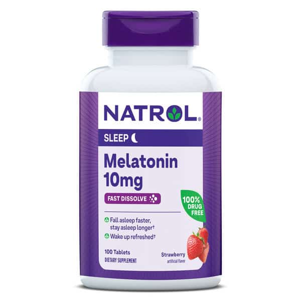 Natrol Fast Dissolve Melatonin 10 mg tablets are sleep support for adults that offer a convenient and easy-to-take option to help with occasional sleeplessness.(1) This adult melatonin nighttime sleep aid supplement is 100% drug-free, and non-habit forming. Natrol melatonin supplements for sleeping offer 10 mg of melatonin per serving, providing the sleep support you need to fall asleep faster and stay asleep longer.(1) Natrol Melatonin fast dissolve tablets promote sleep in as little as 15 minutes.(1) Natrol’s fast dissolving, vegetarian sleep supplements formula with great-tasting strawberry flavor make these sleep aid tablets convenient to take before bed. Suggested Use: Adults, take one melatonin 10 mg fast dissolve tablet 30 minutes before bedtime. Dissolve in mouth or chew before swallowing. No water necessary. Natrol is dedicated to creating innovative, quality products, to help you maintain good health and thrive in your busy, modern lifestyle. (1)These statements have not been evaluated by the Food and drug administration. This product is not intended to diagnose, treat, cure or prevent any disease. (2)Nielsen, xAOC, 52 weeks ending 10/26/24, Sleep Aid Supplements