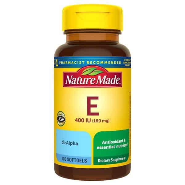 Nature Made Vitamin E 400 IU (180 mg) is an antioxidant supplement that provides Vitamin E, an essential nutrient that helps neutralize free radicals in the body. This Vitamin E supplement also supports immune health. Sourced from high-quality ingredients, these Nature Made Vitamin E 400IU (180 mg) softgels are gluten free and contain no color added, no artificial flavors and no added preservatives. This Vitamin E Nature Made dietary supplement is the dl-Alpha form of Vitamin E, which supports the body’s natural immune defenses. Adults, take one 400 IU Vitamin E softgel daily with water and a meal. Nature Made supplements are quality you can trust. USP has tested and verified ingredients, potency and manufacturing process. USP sets official standards for dietary supplements. Visit the USP verified website for more information. *Based on a survey of pharmacists who recommend branded vitamins and supplements.