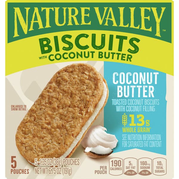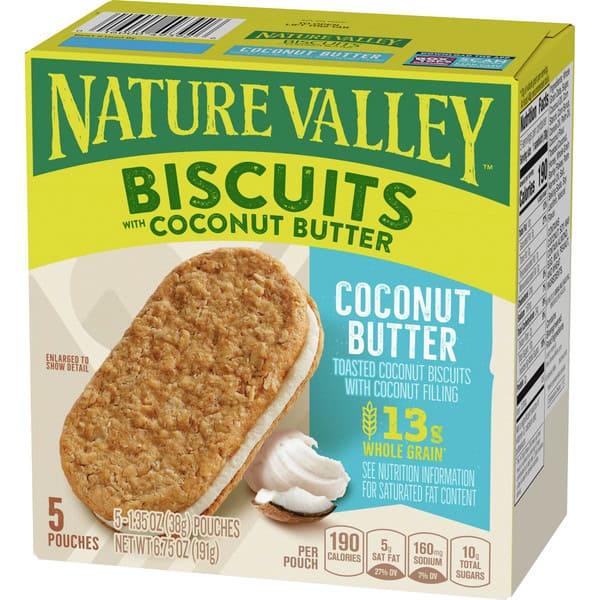 • CONTAINS: One 6.75 oz box of Nature Valley Coconut Butter Biscuit Sandwiches; 5 count