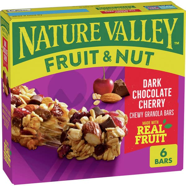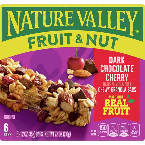• CONTAINS: One 7.4 oz box of Nature Valley Dark Chocolate Cherry Fruit and Nut Granola Bars; 6 bars