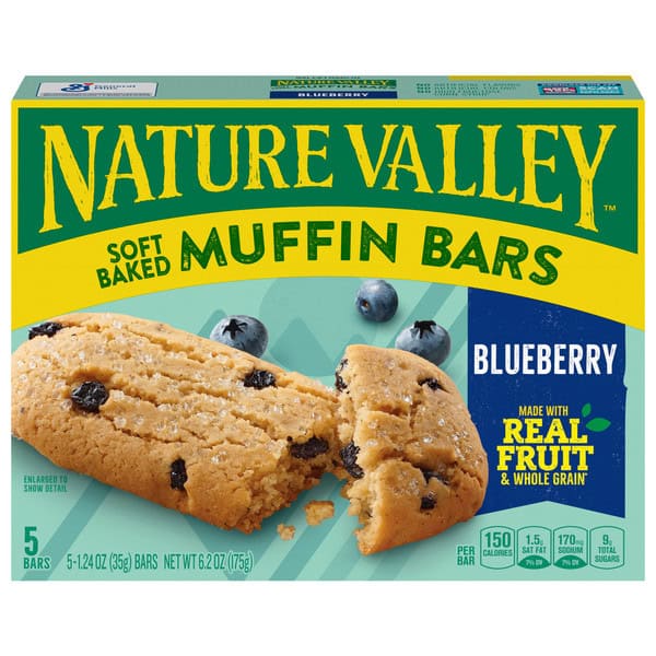 • MUFFIN BARS: Nature Valley Blueberry Soft-Baked Muffin Bars provide the goodness of a soft muffin in a bar to-go; With wholesome ingredients for a breakfast snack, lunch box, or afternoon snack the entire family will enjoy
