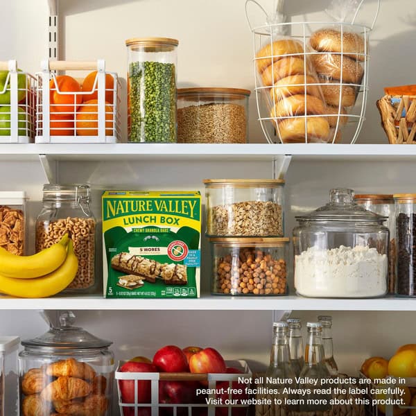 Pack Nature Valley Lunch Box Chewy Granola Bars, the snack that’s peanut free and made in a peanut free facility.* Every S’mores flavor granola bar brings you Nature Valley goodness and a delicious taste. Each serving provides 9g whole grain (*At least 48g recommend daily), without artificial flavors, artificial colors, or high fructose corn syrup. Kids will love the irresistible taste of whole grain oats, milk chocolate, white chocolate chunks, and graham in every chewy S’mores bar. Parents can feel good about serving a wholesome snack. Enjoy a Nature Valley Lunch Box Bar as a tasty addition to your pantry, an after school treat at home, a quick bite on the go, and more. At Nature Valley, we believe that what you put in is what you get out. So wherever the moment takes you, you can rely on our great-tasting snacks to help keep you going. Contains five bars. *Not all Nature Valley products are made in peanut-free facilities. Visit our website to learn more about this product.