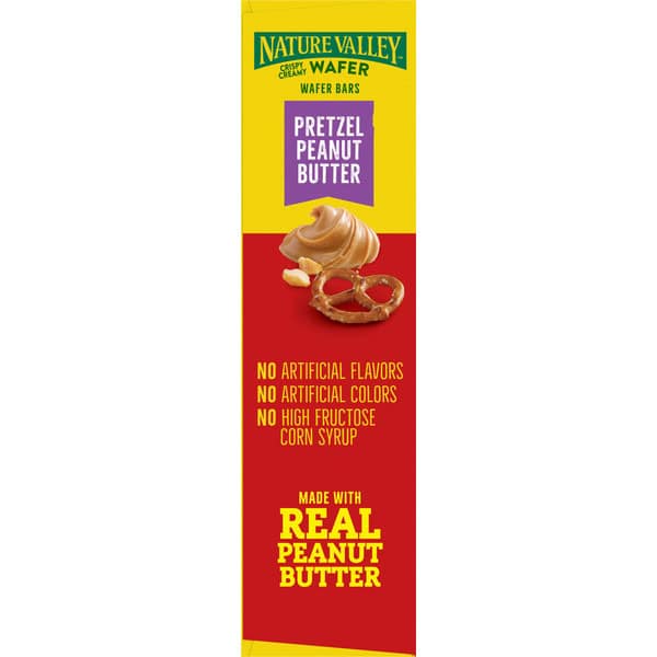 Indulge your crispy creamy cravings with Nature Valley Pretzel Peanut Butter Wafer Bars. Soak up nature in style with these delectable wafer bars, made with light and crispy wafers, layered with peanut butter and topped with pretzel pieces. Reach for these wafer peanut butter bars during an afternoon break. Make them your go-to for easy lunch box treats. Or take a box along to share with the family when conquering a new trail. it’s a portable snack perfect for the pantry, lunch box, and hiking trail. At Nature Valley, we believe that what you put in is what you get out. So wherever the moment takes you and your family, you can rely on our great-tasting snacks to help keep you going. Contains 5 bars.