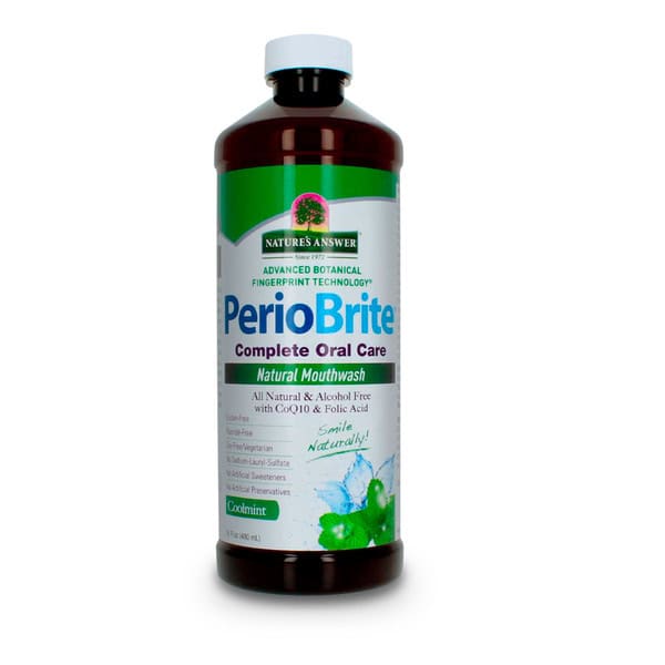Since 1972. Complete oral care. With natural ingredients & alcohol free. With CoQ10 & folic acid. Fluoride-free. Smile naturally! Discover Nature’s Answer and trust the difference – the true nature of our standards goes way beyond the herb – PerioBrite Natural Mouthwash is a great tasting mouthwash that keeps breath fresh and clean. PerioBrite Natural Mouthwash contains phytoplenolin, a patented herbal extract that has been shown in independent laboratory studies to promote cell vitality. Soothing wildcrafted herbs, well-known for their cleansing action, are combined with CoQ10, Folic Acid, Oregano, Cinnamon and Clove to promote tooth and gum wellness. As a part of your oral health program PerioBrite Natural Mothwash energizes the whole mouth with a cool, sparkling minty-fresh sensation. Holistically balanced. Cruelty free. Not tested in animals.