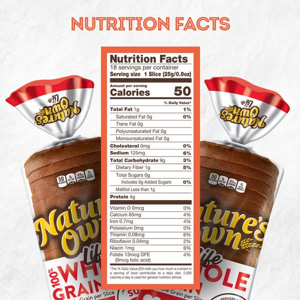 • You’ll get one 16 oz loaf of Nature’s Own Life 100% Whole Grain Sugar-Free Bread