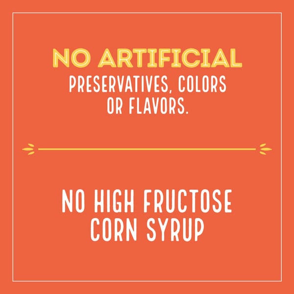 • No artificial preservatives, colors or flavors, and no high fructose corn syrup