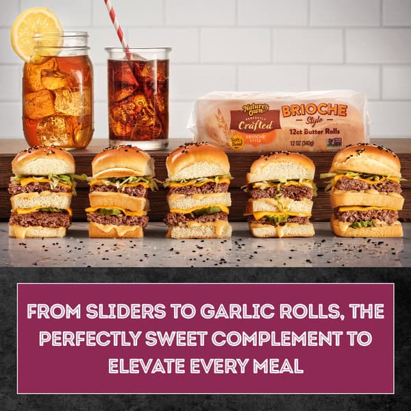 Nature’s Own Perfectly Crafted® Brioche Style Butter Rolls set the bar high for your next dinner party or lunch with their soft texture and subtle sweetness. With 12 fluffy and delicious brioche style dinner rolls, you can add a gourmet touch to any meal. Stuff them with garlic and cheese for a delicious appetizer or use them as a slider bun to elevate any slider recipe for an easy weeknight dinner. Nature’s Own Perfectly Crafted soft bread rolls have no artificial preservatives, colors or flavors, and no high-fructose corn syrup; and no cholesterol. Plus, you can trust that all Perfectly Crafted products from Nature’s Own are Non-GMO Project Verified. You’ll feel confident serving family and friends delicious choices from Nature’s Own bread, America’s #1 selling loaf bread brand.*