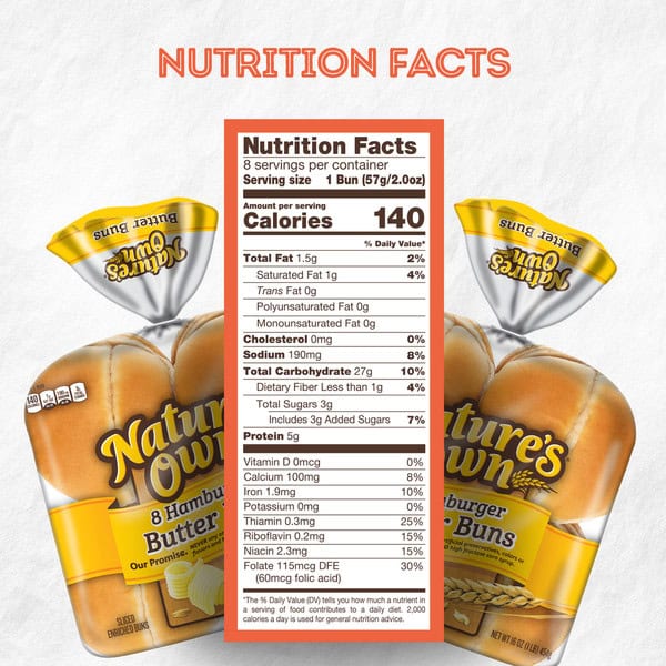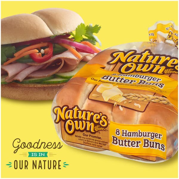 • You’ll get eight Nature’s Own Hamburger Butter Buns