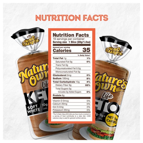 • You’ll get one 16 oz loaf of Nature’s Own Life Keto Soft White Bread