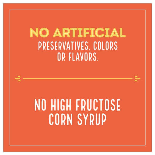 • No artificial preservatives, colors or flavors, and no high fructose corn syrup