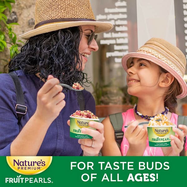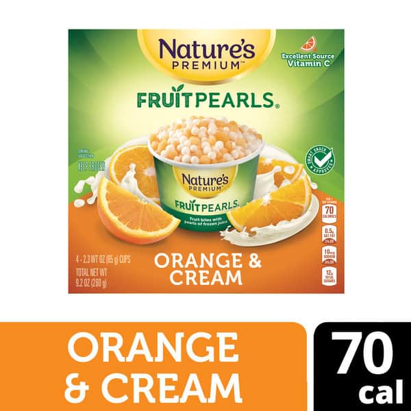 Fruit bites with pearls of frozen juice. Per 1 Cup Serving: 60 calories; 0 g sat fat (0% DV); 5 mg sodium (0% DV); 11 g total sugars. Only 60 calories per serving. Gluten free. Excellent source vitamin C. Smart snack approved. Nature’s Premium Fruit Pearls Fruit Bites with Pearls of Frozen Juice: We use hand-picked fruits and simple ingredients from experienced 4th generation family farmers and flash freeze them into truly unique, fun and healthy products. These fruit bites with pearls of frozen juice make for a powerful combination of flavors for taste buds of all ages! With only 60 calories per serving and smart snack compliant, Nature’s Premium Fruit Pearls are sure to put a smile on the face of everyone who tries them! No artificial sweeteners. No corn syrup. www.naturespremiumfruitpearls.com. Please recycle. Check to see if facilities exist in your area. Made in the USA with simple ingredients.